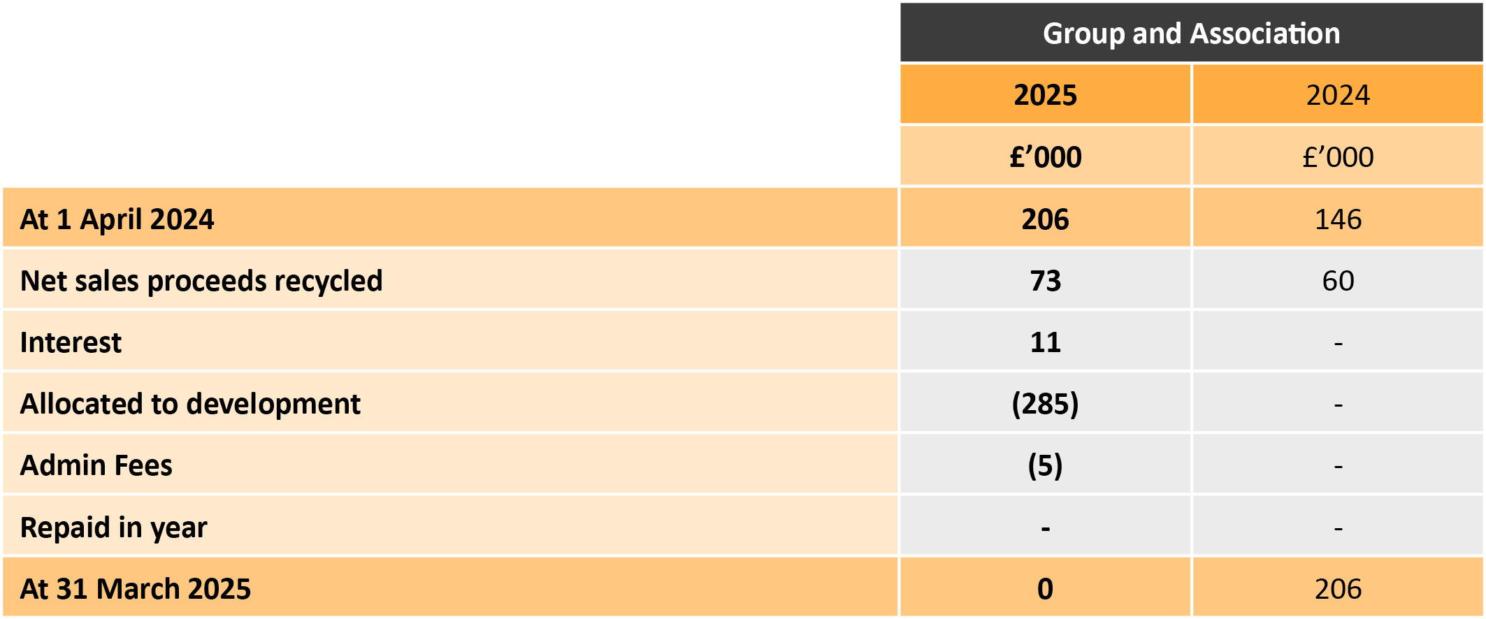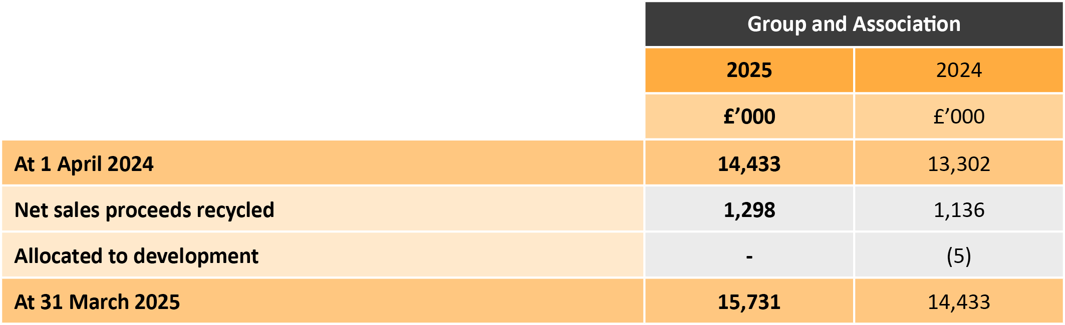 In 2003, Settle was the recipient of a Large-Scale Voluntary Transfer (LSVT) of housing properties from North Hertfordshire County Council. In exchange for receiving so many homes at significant discount, Settle agreed to restrict income from any subsequent sales to a predefined low value until 2030. The remaining proceeds from each sale are recognised here as a creditor, repayable on demand.
