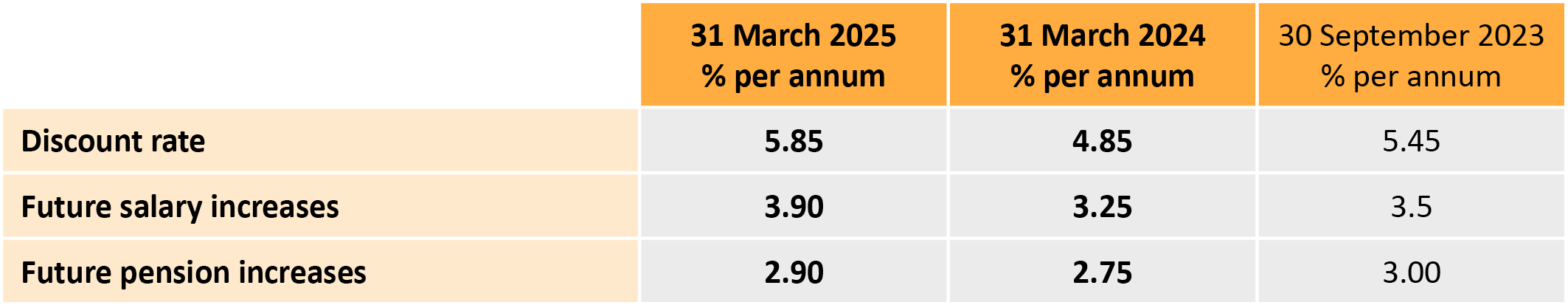 For England and Wales, the next triennial valuation date is as at the accounting date, 31 March 2025. The results of the 2025 valuation will not be finalised at the time of preparing reports, nor assumptions agreed with the relevant LGPS fund. An update to base mortality tables will follow next year as part of 31 March 2026 reporting.